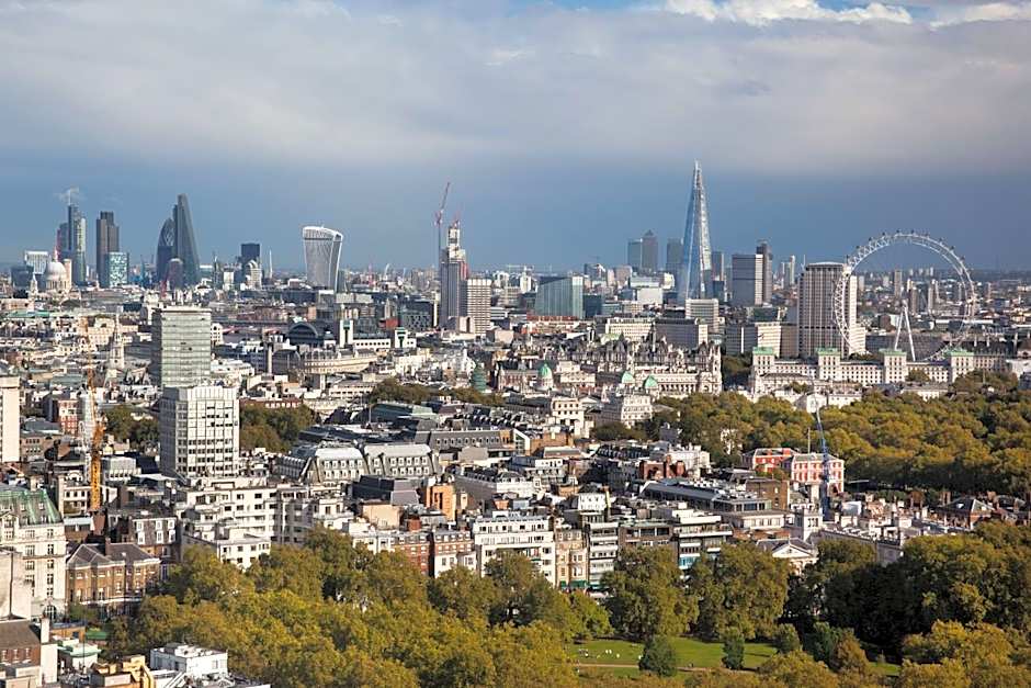 50 sq. m./ 538 sq. ft., Mayfair view, floor-to-ceiling window, living room, Executive benefits Admire iconic views of Mayfair and Westminster from the floor-to-ceiling windows of the Mayfair Suite. This modern suite features a separate living room with a sofa bed, a private bedroom, and a stylish window seat. Refresh in the elegant bathroom with a bathtub/shower and a range of exclusive bathroom products. Enjoy access to the Executive Lounge, with complimentary breakfast each morning. Unwind and watch one of two TVs with BT Sports and on-demand movies or catch up on work at the desk. Enjoy complimentary standard WiFi. Other amenities include air conditioning and a minibar. Special touches include bathrobes and slippers. Sleeps 3. One person accommodated on a sofa bed. View Floor Plan